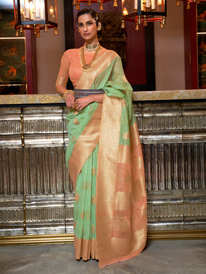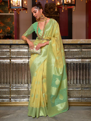These sarees are a popular choice among saree lovers due to their unique texture and versatility. These sarees are made from natural flax fibres, which are known for their durability, breathability, and eco-friendliness.