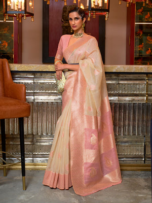 The beautiful banarasi design on comfortable linen sarees is the perfect combination of tradition and innovation. Traditionally done on silk sarees, the banarasi design gives the linen saris an equally exquisite look.