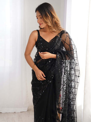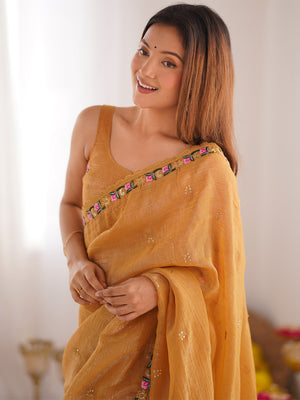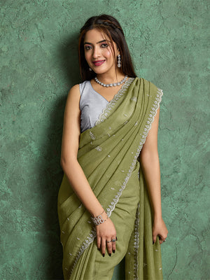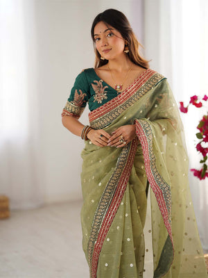 Banarasi Crush Lace Border Saree With Sequins And Cording Embroidery Work With Blouse Piece