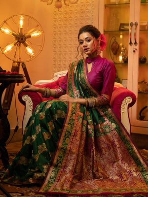 Peach Silk Chiffon Viscose Border Floral Printed Saree Saree With Blouse Piece