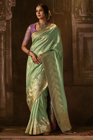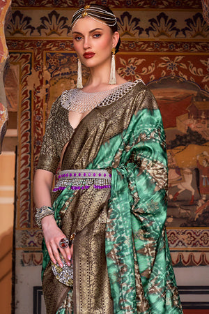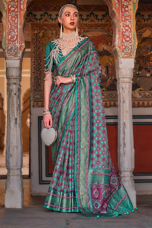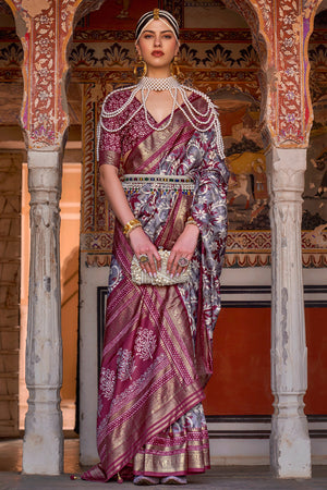 Karagiri Cadillac Purple & Green Printed Patola Silk Saree With Blouse Piece