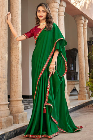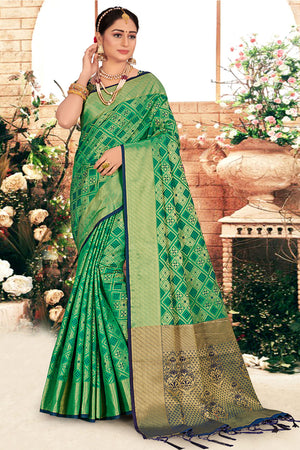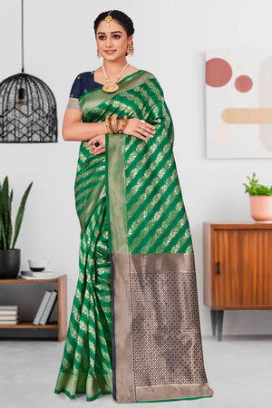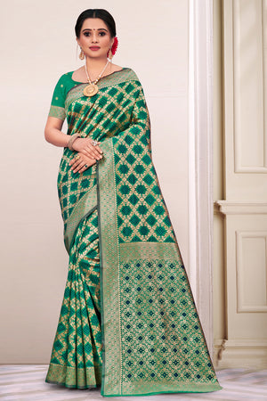 • Emerald Green Khaddi Georgette Banarasi Saree
