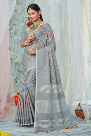 • Bright Grey Khaddi Georgette Banarasi Saree