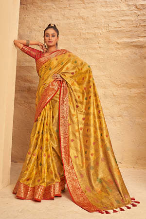 • Mango Yellow Banarasi Khaddi Georgette Saree
