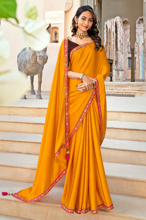• Turmeric Yellow Satin Saree