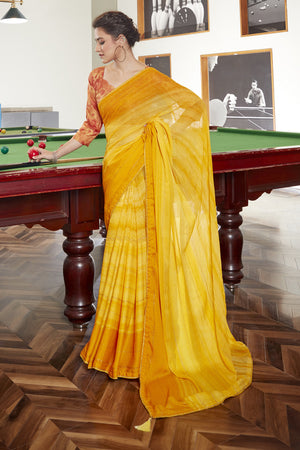 • Printed Hazelwood Yellow Banarasi Chanderi Saree