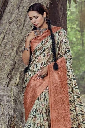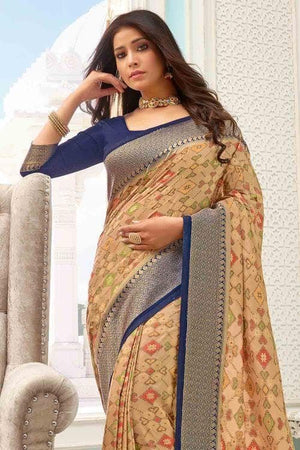 • Printed Sand Yellow Banarasi Chanderi Saree