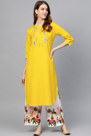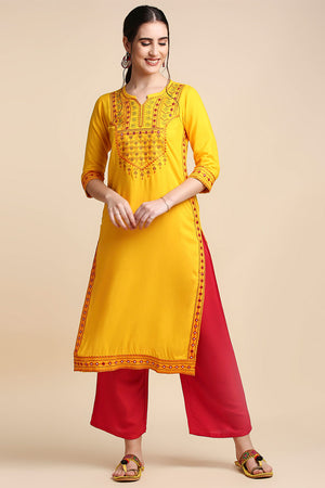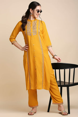 • Mustard Yellow Maroon Yoke Design Kurta set