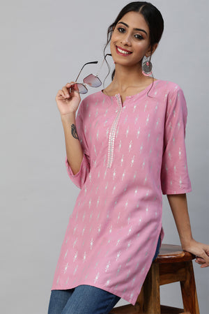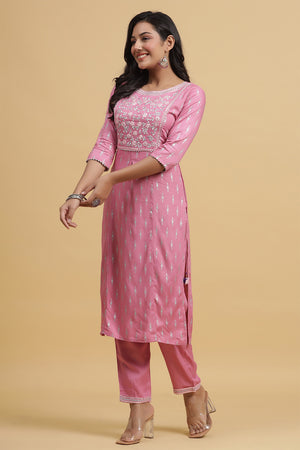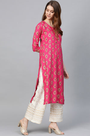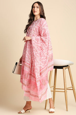 • Pink Ethnic Motifs Printed Pure Cotton Kurtaset