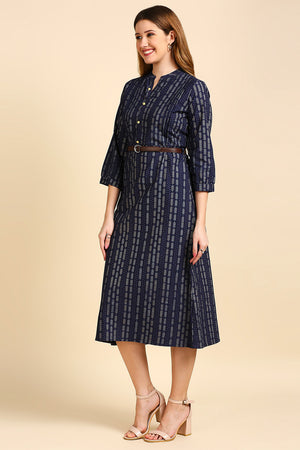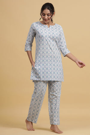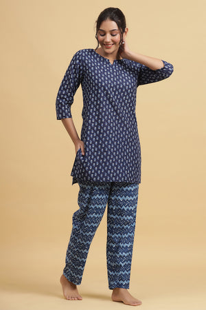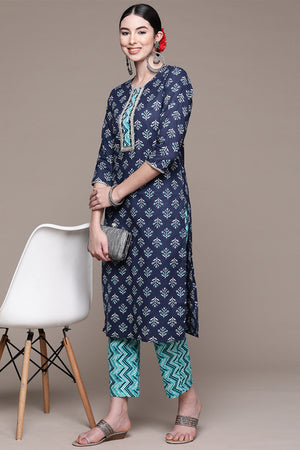 • Blue Ethnic Motifs Printed Pure Cotton Kurta set