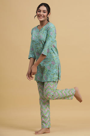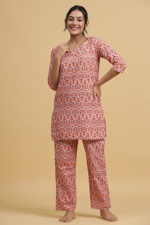 • Peach-Coloured & Purple Printed Cotton Night suit