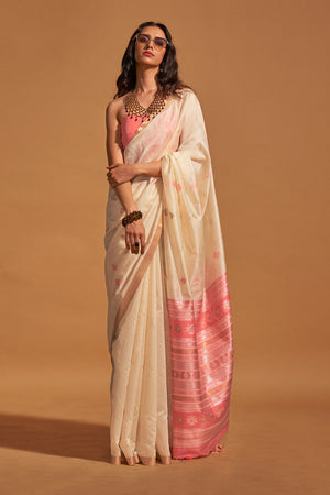 • Baby Pink Paithani Silk Saree With Blouse Piece