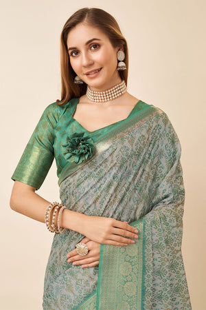 • Green Linen Blend Silk Saree With Blouse Piece