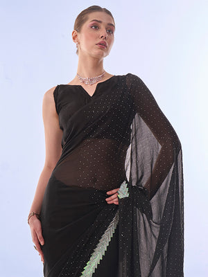 • Navy Blue Printed Georgette Saree With Blouse Piece