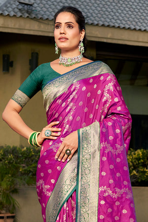 • Purple Banarasi Silk Saree With Blouse Piece