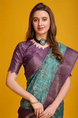• Sea Green Cotton Silk Saree With Blouse Piece