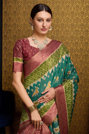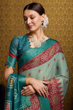 • Teal Silk Saree With Blouse Piece