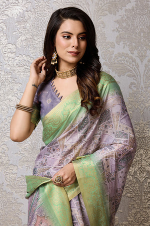 • Lavender Silk Saree With Blouse Piece