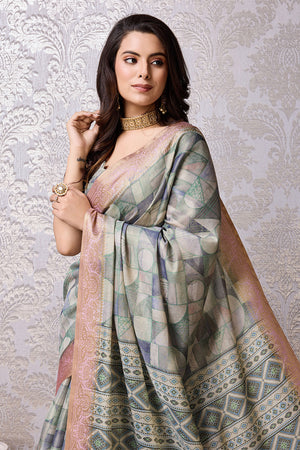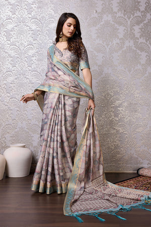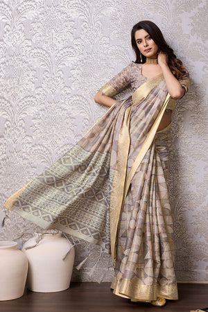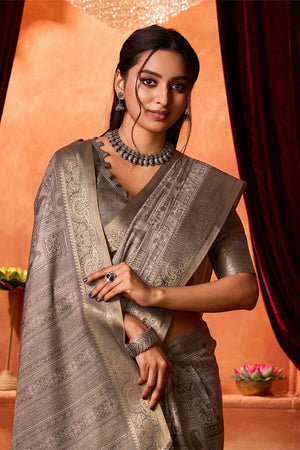 • Grey Silk Saree With Blouse Piece