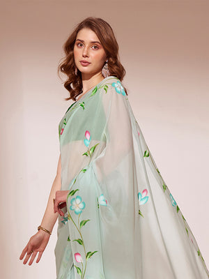 • Sea Green Organza Saree With Blouse Piece