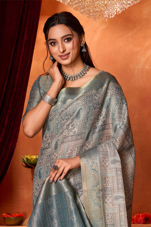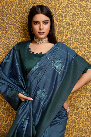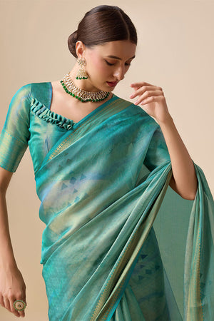 • Blue Organza Ready to wear Saree With Blouse Piece