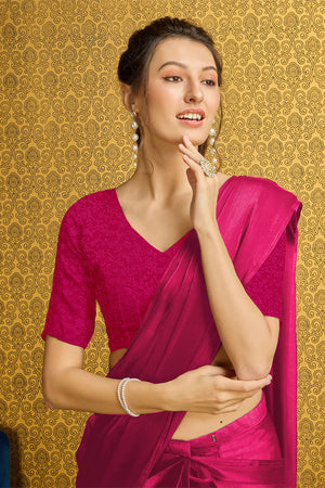 • Magenta Organza Ready To Wear Saree With Blouse Piece