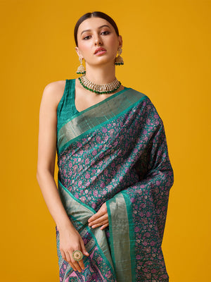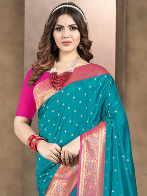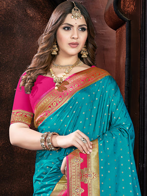 • Teal Dola Silk Saree With Blouse Piece