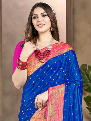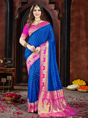 • Blue Silk Saree With Blouse Piece