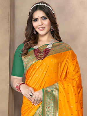 • Yellow Dola Silk Saree With Blouse Piece