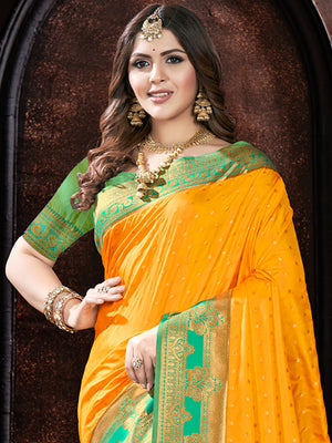 • Yellow Silk Saree With Blouse Piece