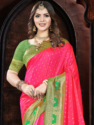• Pink Dola Silk Saree With Blouse Piece