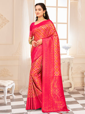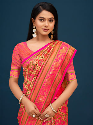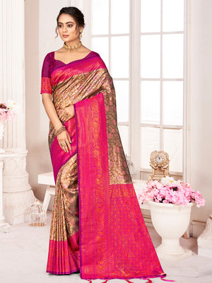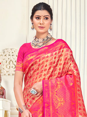 • Pink Kanjivaram Silk Saree With Blouse Piece