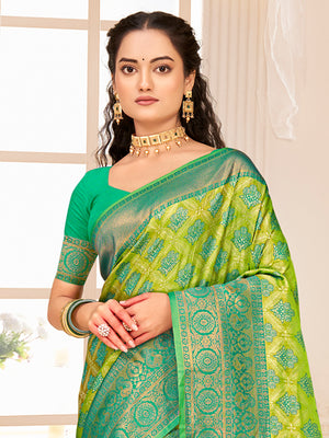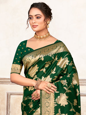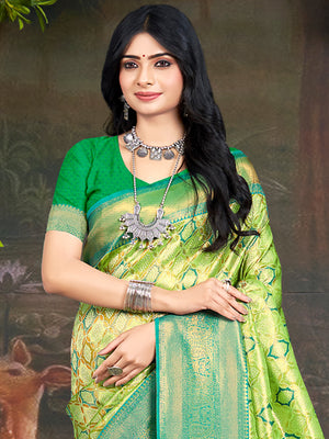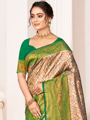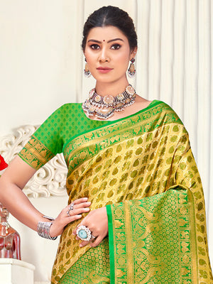 • Green Kanjivaram Silk Saree With Blouse Piece