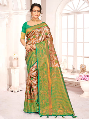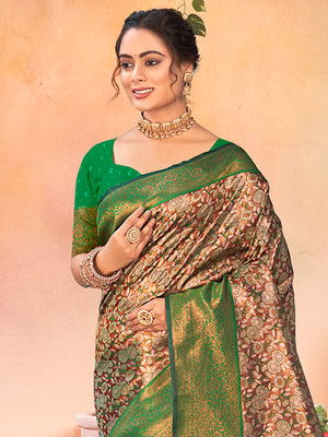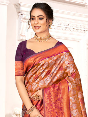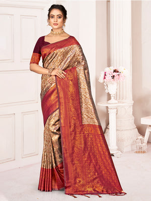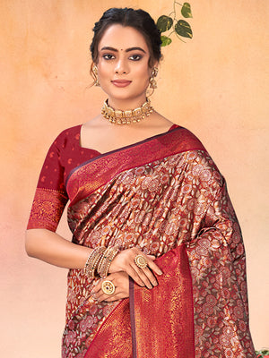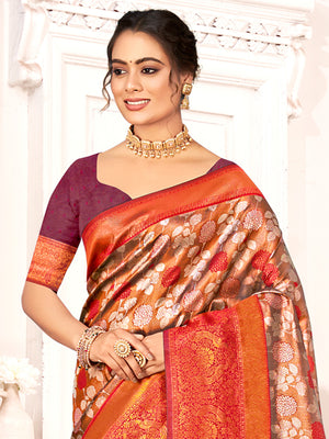 • Brown Kanjivaram Silk Saree With Blouse Piece