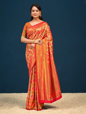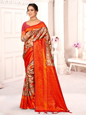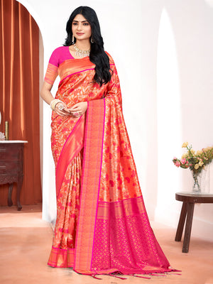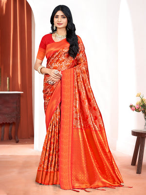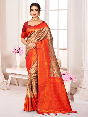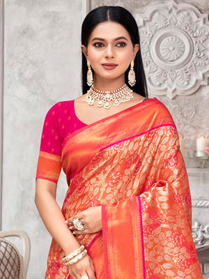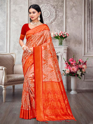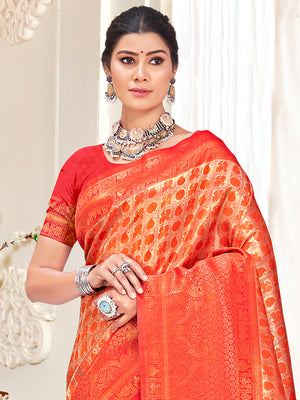 • Orange Kanjivaram Silk Saree With Blouse Piece