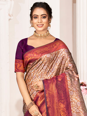 • Purple Kanjivaram Silk Saree With Blouse Piece