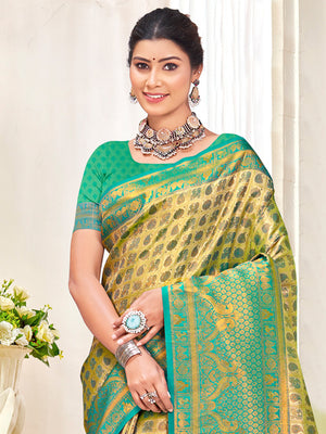 • Sea Green Kanjivaram Silk Saree With Blouse Piece