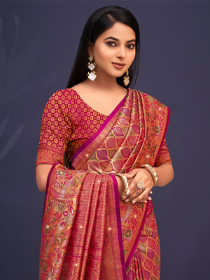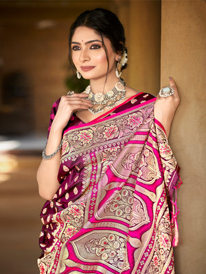 • Maroon Banarasi Silk Saree With Blouse Piece
