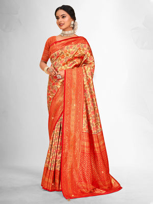 • Yellow Banarasi Silk Saree With Blouse Piece