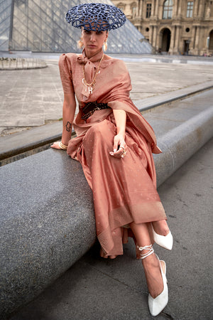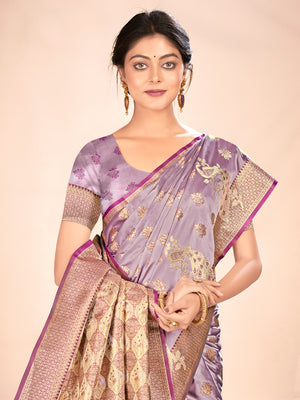 • Light Pink Paithani Silk Saree With Blouse Piece