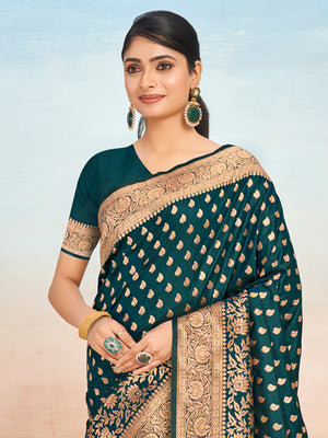 • Light Green Banarasi Silk Saree With Blouse Piece