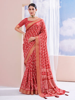 • Pink Kalamkari Silk Saree With Blouse Piece