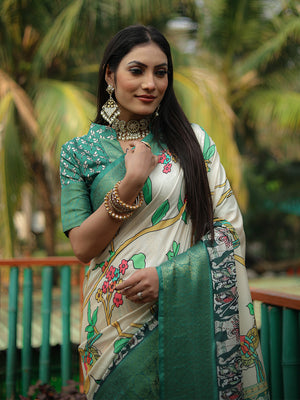 • Green Silk Saree With Blouse Piece