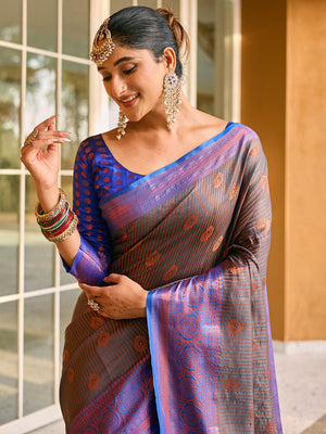• Brown Kanjivaram Silk Saree With Blouse Piece