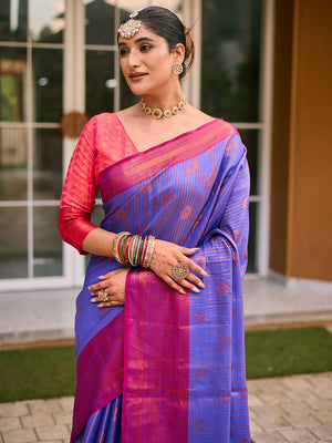 • Purple Banarasi Silk Saree With Blouse Piece