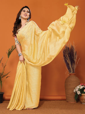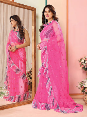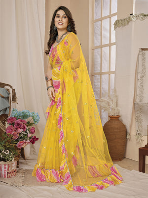 • Yellow & Pink Georgette Saree With Blouse Piece