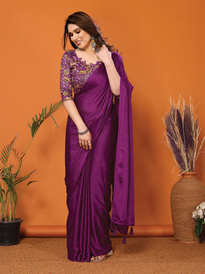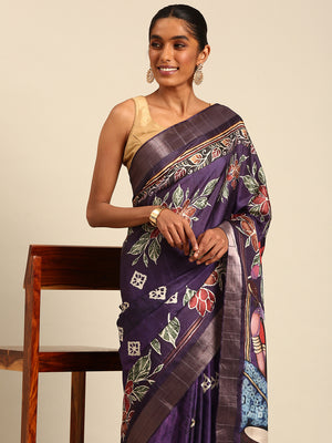 • Violet Cotton Digital Print Saree With Blouse Piece