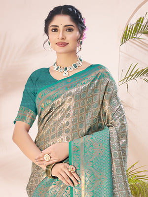 • Pista Green Polyester Zari Saree With Blouse Piece