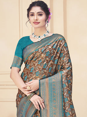 • Coffee Brown Kota Doria Saree With Blouse Piece