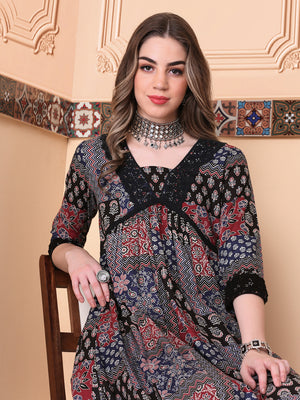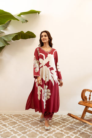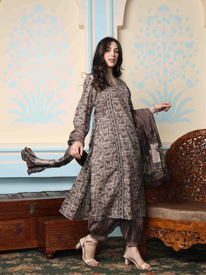 Floral Printed Panelled Beads and Stones Anarkali Kurta With Trouser & Dupatta